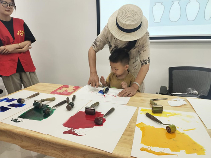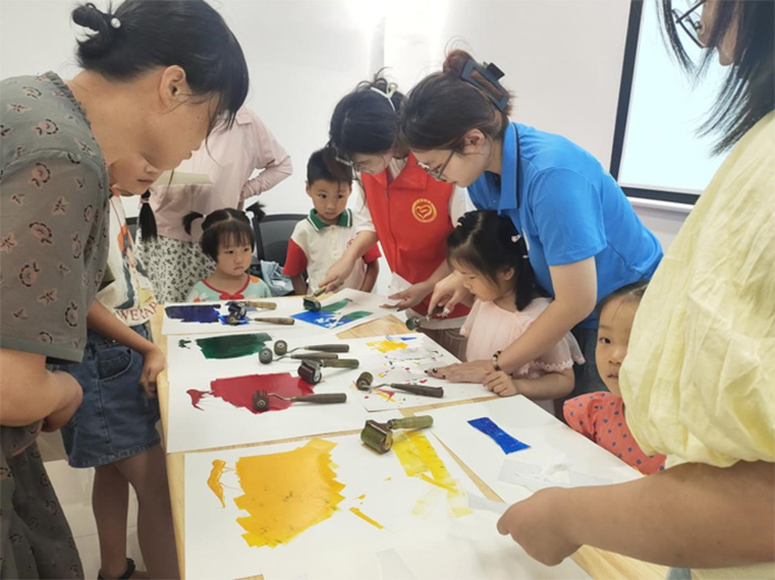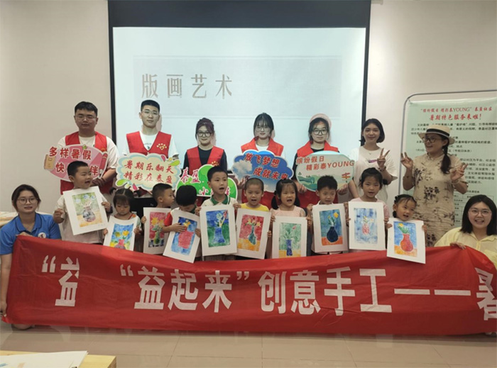 多彩大學生網常州7月3號電(通訊員:米雅煊)常州工學院藝術與設計學院暑期社會實踐項目“益起來創意手工——暑期青少年關愛行動”于2023年7月3日赴常州市鐘樓區西林街道泰盈社區進行版畫藝術普及活動。此次活動的內容為普及版畫的基礎知識,并學習和制作吹塑紙版畫,讓社區的孩子們在具體的實踐操作中體會到版畫的藝術魅力,提高他們對美的感知與領悟能力,同時也鍛煉了孩子們的動手能力,豐富了孩子們的暑期生活。