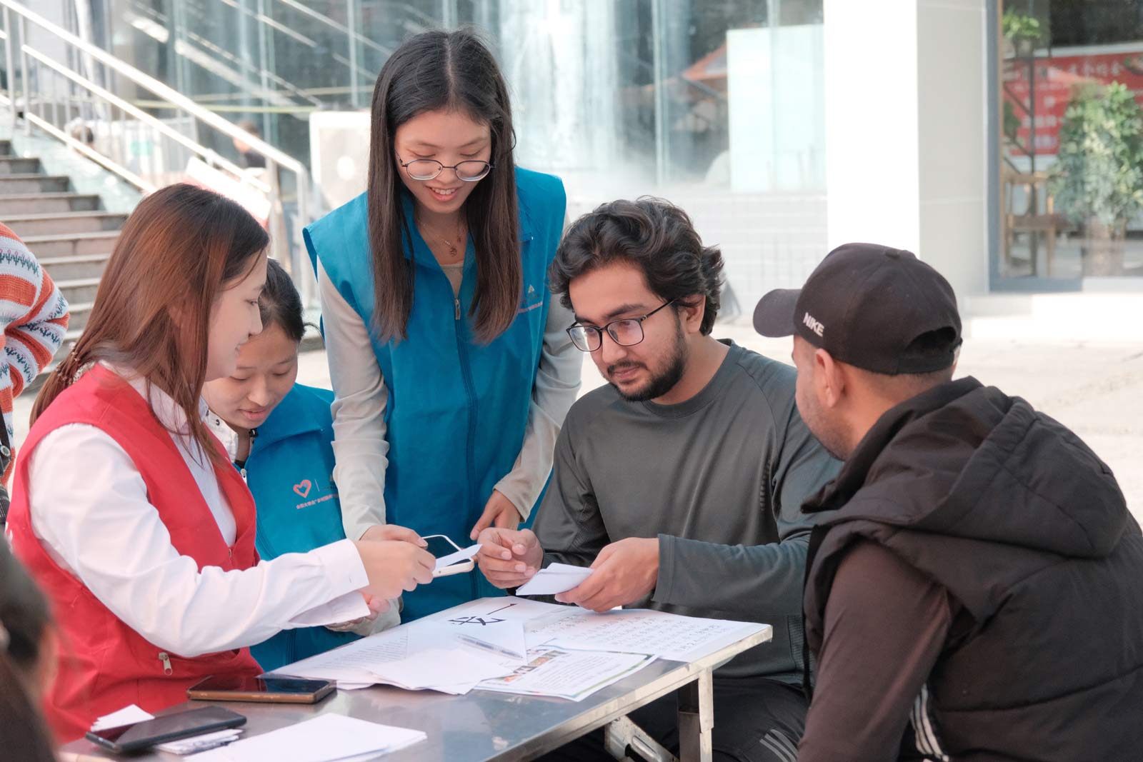 圖為志愿者為在校學生發放疾病科普宣傳單,講解預防知識