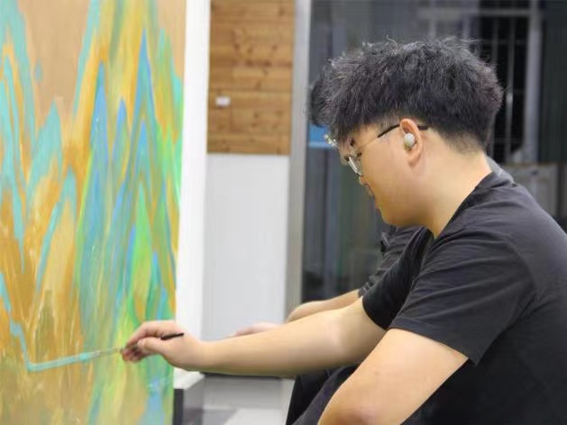 同學們在繪畫的過程中與校友學習交流專業技能、回顧校園生活,共敘共繪至誠青春風采。校友們傾囊相授,將接力棒傳遞給新一代至誠學子們。