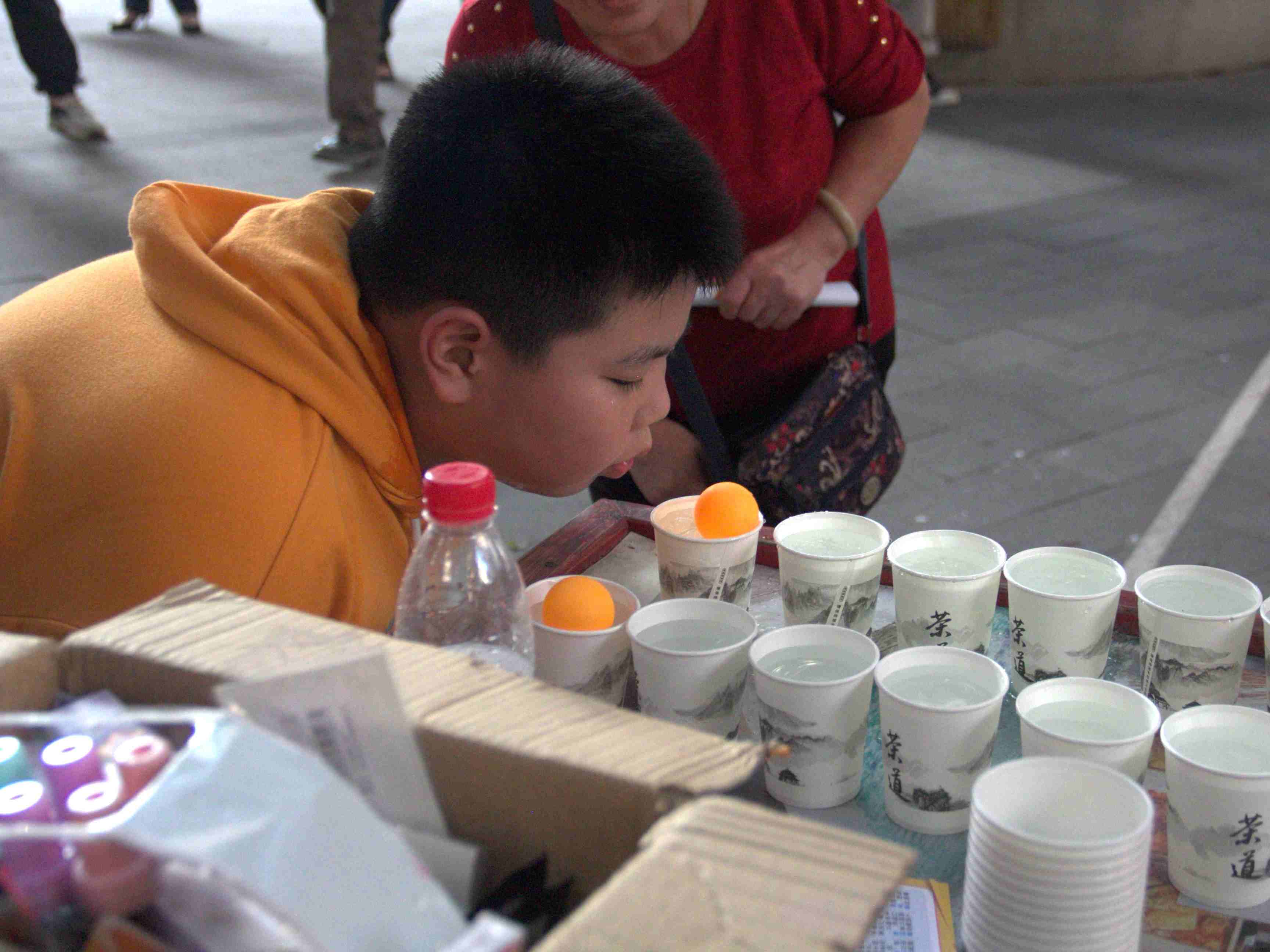 社區的大小朋友們各顯神通,使用各種技巧將小球吹過一個個裝著水的紙杯。水上吹球的小游戲給社區活動增添了輕松愉快的氛圍,志愿者們熱情積極,點燃了社區友愛之心,歡樂之情。