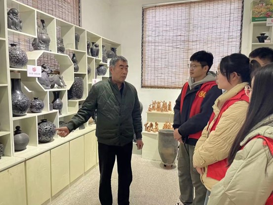 國青年網(wǎng)日照1月18日電(通訊員 石晶)在悠久的歷史長河中,黑陶文化以其獨(dú)特的魅力流傳至今。它不僅是中華民族的藝術(shù)瑰寶,更是人類文明的寶貴遺產(chǎn)。新時(shí)代青年應(yīng)傳承和發(fā)揚(yáng)中華優(yōu)秀傳統(tǒng)文化,以探尋和保護(hù)中國非物質(zhì)文化遺產(chǎn)為己任,讓中華傳統(tǒng)文化在新時(shí)代煥發(fā)出新的活力。為了解黑陶文化傳承現(xiàn)狀,助力中華文化續(xù)航發(fā)展,1月13日,曲阜師范大學(xué)工學(xué)院“陶魂新鑄”實(shí)踐隊(duì)前往山東省日照市東港區(qū)兩城黑陶研究基地,探究黑陶的傳承與發(fā)展。