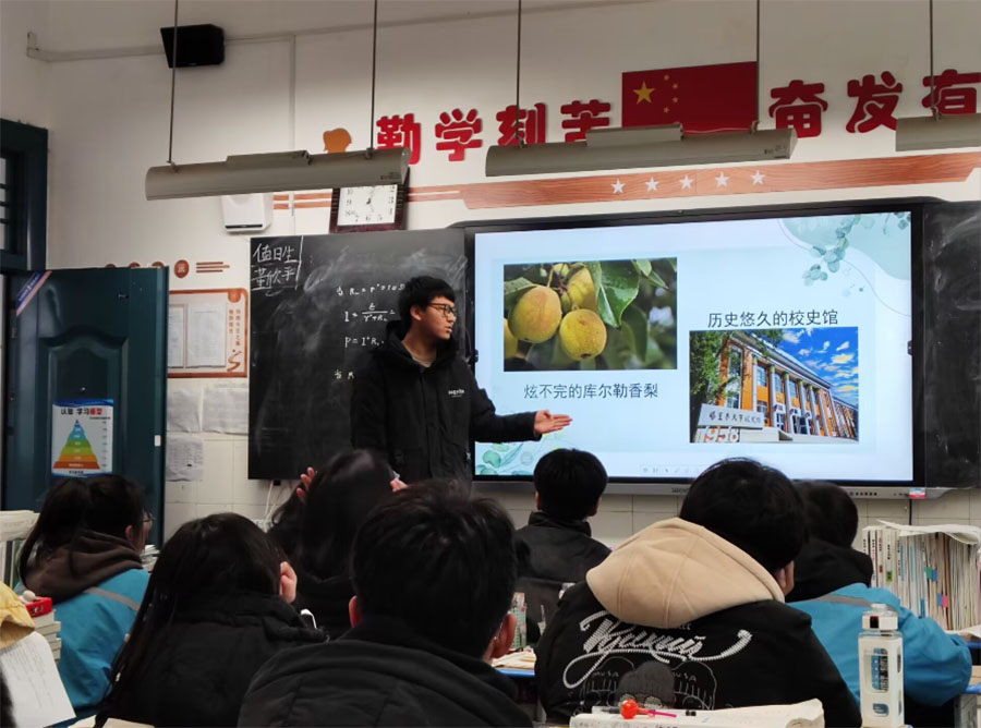 活動開始前,宣講團成員拜訪高中母校師長,匯報在大學期間的學習、成長情況,分享大學生活感悟。活動首先由優秀學子與學弟學妹分享學習方法與志愿填報經驗,繼而學生代表進行介紹學校基本情況,播放塔里木大學宣傳片,分發招生宣傳冊,并回答他們提出的問題,最后還對高三學子進行了鼓勵并分發了一些小禮品。“這次活動讓我認識到了學習上的許多不足,也讓我有了目標,學長,明年塔大見。”關山中學高三7班王子晨說。