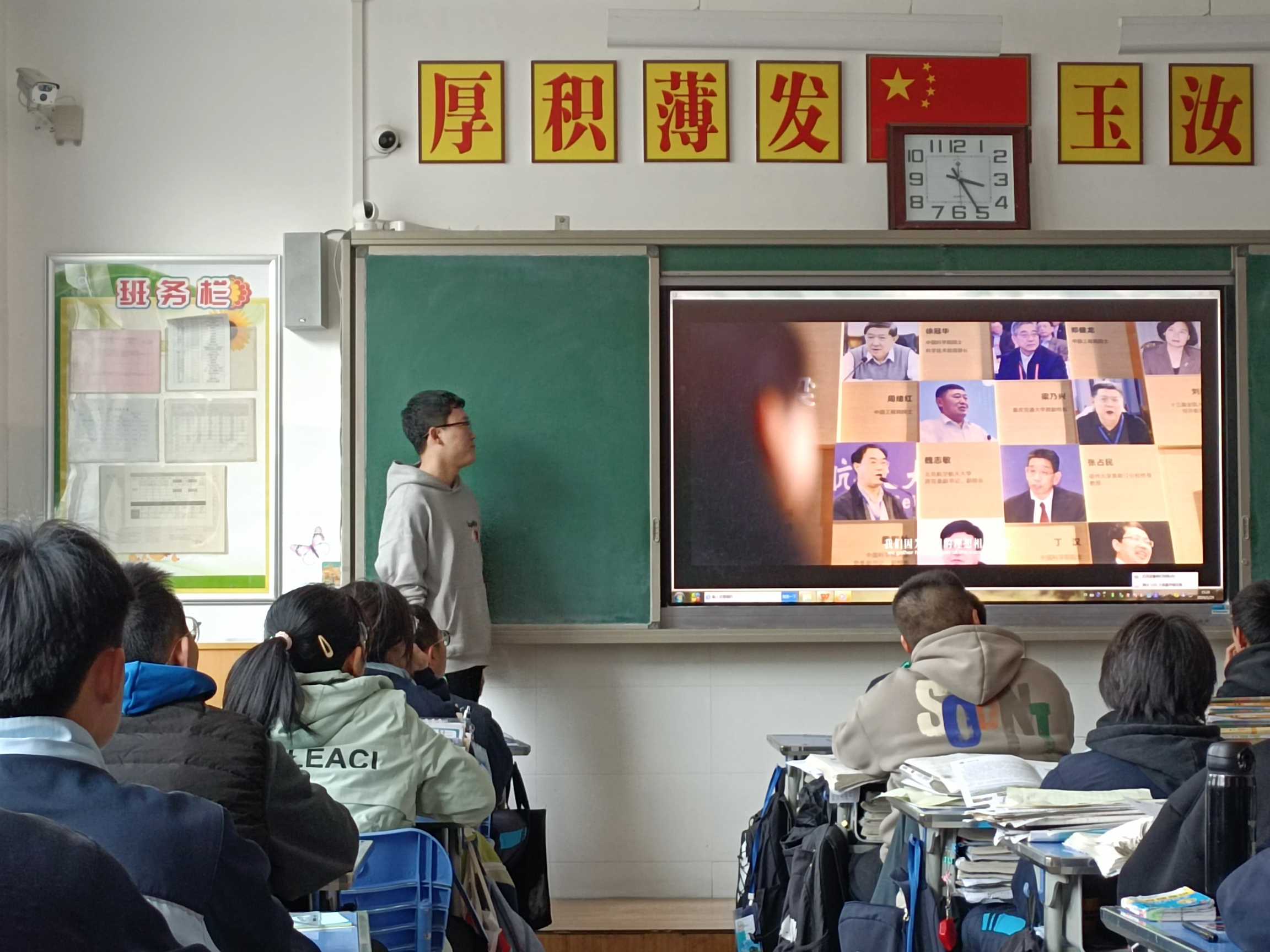 (實(shí)踐隊(duì)員為高三同學(xué)播放招生視頻)
