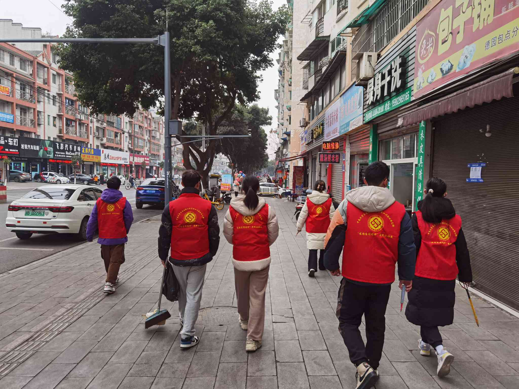 圖為團隊成員在街道清理垃圾