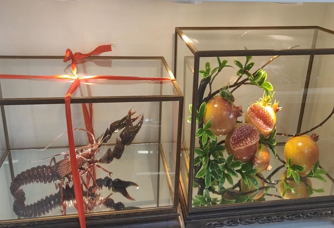 不僅是適應(yīng)外部更加便利的傳播學(xué)習(xí)渠道,琉璃這項傳統(tǒng)非遺技藝自身也在不斷創(chuàng)新發(fā)展。琉璃精品涵蓋多種制作工藝,有古法琉璃、琉璃燈工、琉璃內(nèi)畫、脫蠟制造,還有一度失傳、堪稱世界之最的琉璃鋪絲等,每一件展品都具有很高的藝術(shù)和觀賞價值,充分展現(xiàn)了淄博琉璃設(shè)計創(chuàng)作的藝術(shù)魅力,以及淄博陶琉產(chǎn)業(yè)轉(zhuǎn)型升級的最新成果。