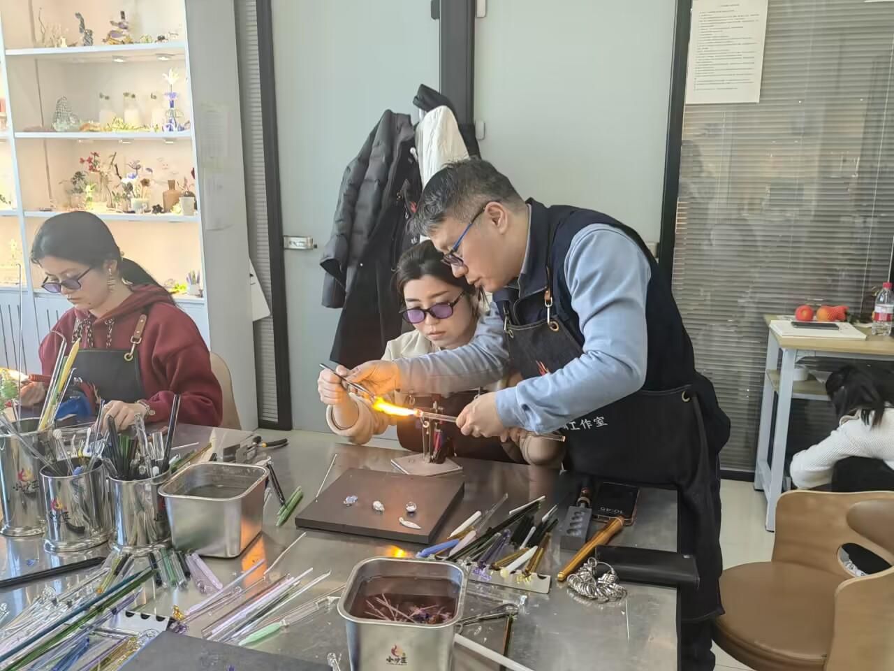 圖為任波老師正在指導(dǎo)學(xué)生制作琉璃作品。中國青年網(wǎng)通訊員 徐欣悅 供圖