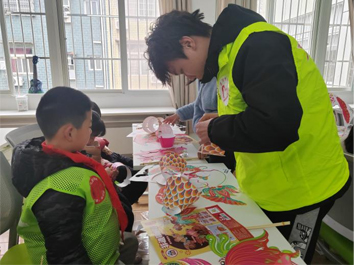 下午的時(shí)侯進(jìn)行了“非遺文化——魚(yú)燈”的講解與制作魚(yú)燈。制作魚(yú)燈的過(guò)程很繁瑣,在志愿者們的暖心陪伴下鼓勵(lì)小朋友們互相討論互相幫助制作,但是也總會(huì)遇到卡殼的地方,這時(shí)候志愿者們成了“陀螺”不停的穿梭在小朋友們之間教他們?nèi)绾沃谱,在小朋友們一聲?ldquo;老師,這個(gè)怎么做”、“老師,我不會(huì)這個(gè)”到出現(xiàn)在他們面前且解決問(wèn)題,成功使他們做出一個(gè)個(gè)漂亮的魚(yú)燈而感到開(kāi)心與溫暖。在魚(yú)燈制作課程中不僅提高了小朋友們的動(dòng)手能力還培養(yǎng)了小朋友們的團(tuán)隊(duì)合作能力與創(chuàng)造能力。