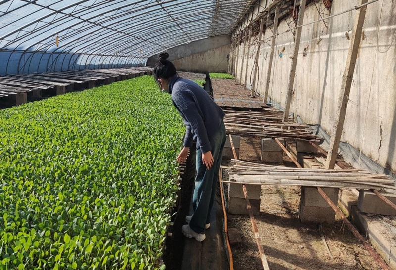 圖為實踐隊員來到小王村試驗新農田,親身觀察農苗長勢,感受先進農業技術對農苗產生的有利影響。