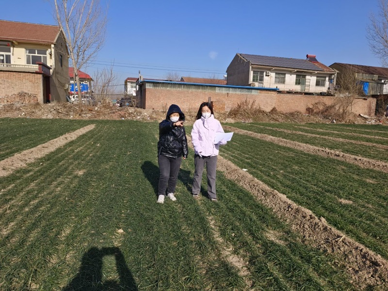 圖為社會實踐隊員跟隨田單村村委會工作人員來到農田中實地探訪,感受著農業技術的進步帶來的便利和巨大改變。
