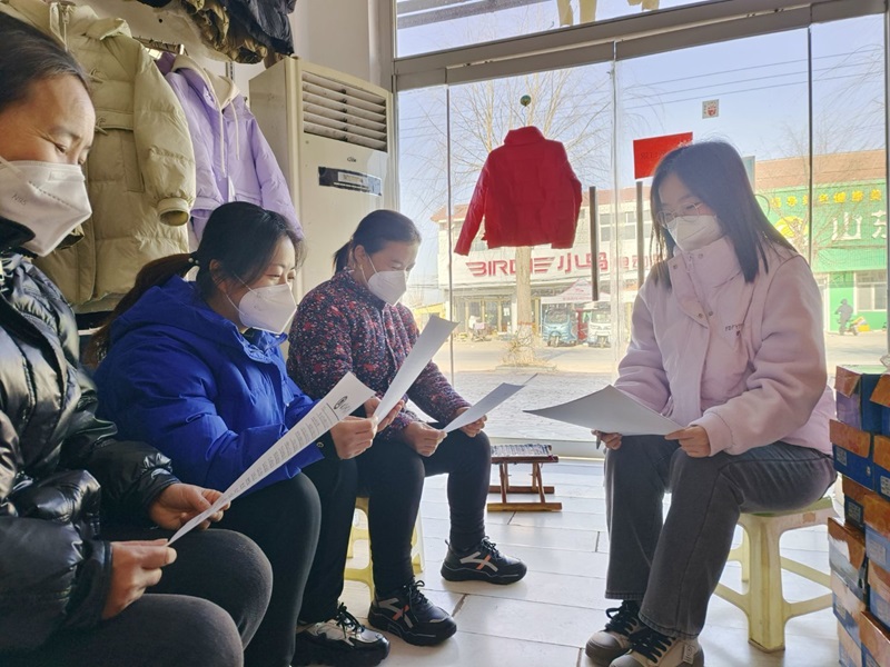 圖為社會實踐隊員來到田單村村委會和工作人員進行交流,深入了解并記錄東關村新型職業農民培育狀況