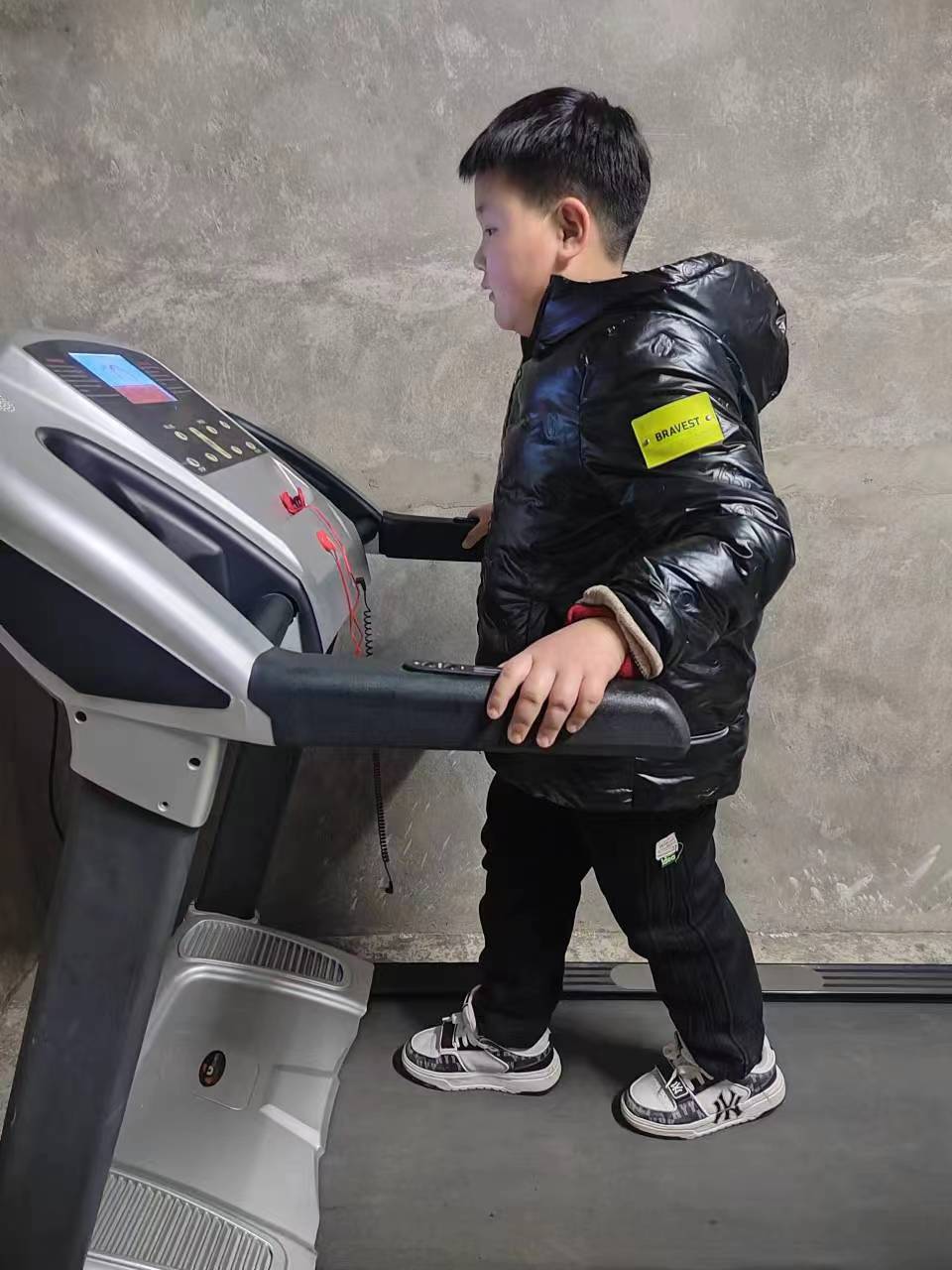 圖為小朋友在跑步機(jī)上跑步,鍛煉身體。