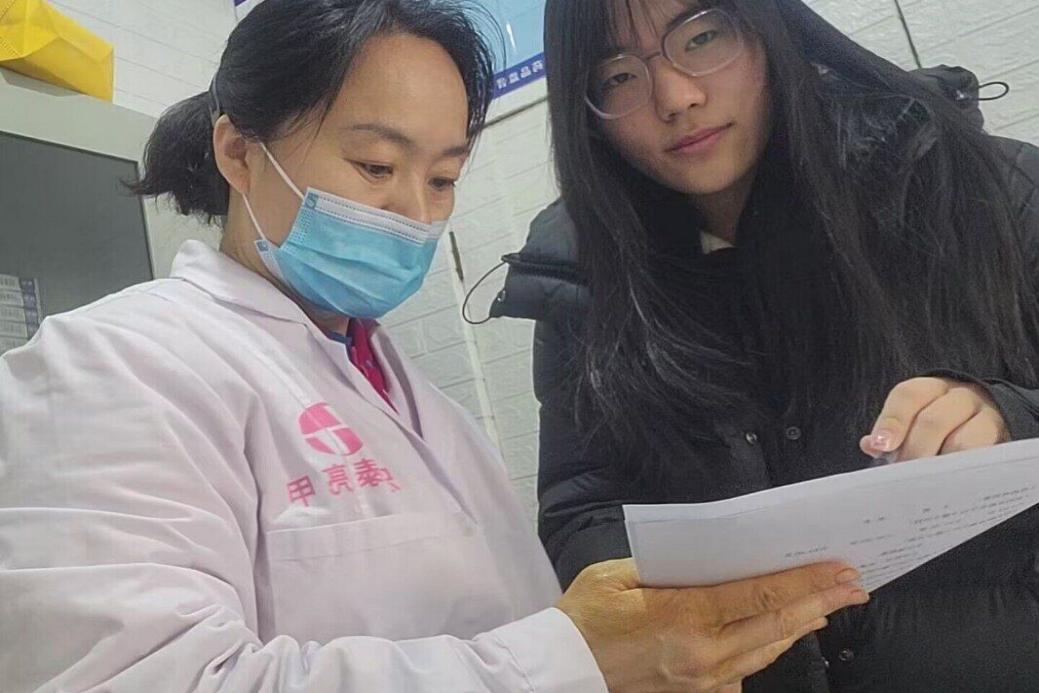 圖為實踐隊員了解社區(qū)居民健康狀況。