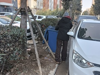 在社區里,隊員們還注意到地面上有許多燃放煙花爆竹后留下的垃圾。經詢問,過年期間社區內許多人燃放煙花爆竹,留下紙殼垃圾,清潔工加班也難以清潔干凈。于是隊員們動手幫忙撿拾垃圾,為維護社區環境貢獻力量。
