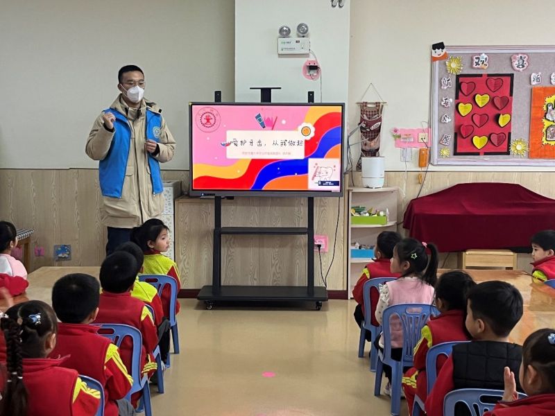 在進行尋訪調(diào)研的同時,部分團隊成員也充分發(fā)揮自己的想象力和創(chuàng)造力,為當?shù)赜變簣@開展了特色的第二課堂公益支教活動。所教授的課程包括手工制作、歌曲教學、紅色故事分享和口腔知識宣傳等多個方面,內(nèi)容涵蓋了科學、藝術(shù)、身體健康等多個維度,主要面向?qū)ο笠矊崿F(xiàn)了各個年齡段的覆蓋。在課堂上,“老師”們以生動形象和淺顯易懂的形式把原本復雜的課程分解成小朋友們易于理解的知識點,利用PPT展示、老師講解和視頻播放等形式實現(xiàn)視覺、聽覺和觸覺相結(jié)合,打造互動式課堂,鼓勵小朋友們舉手回答問題,調(diào)動小朋友們思維的積極性,提升每位小朋友的課堂參與感,引導小朋友們眼動、口動,碰撞出思維跳躍的火花,為小朋友們埋下了知識的種子。進行完課程內(nèi)容之后,團隊成員們也和幼兒園老師們進行了深入交流,通過掌握小朋友們感興趣的內(nèi)容來構(gòu)建個性化課程,營造出輕松愉快的課堂氛圍。