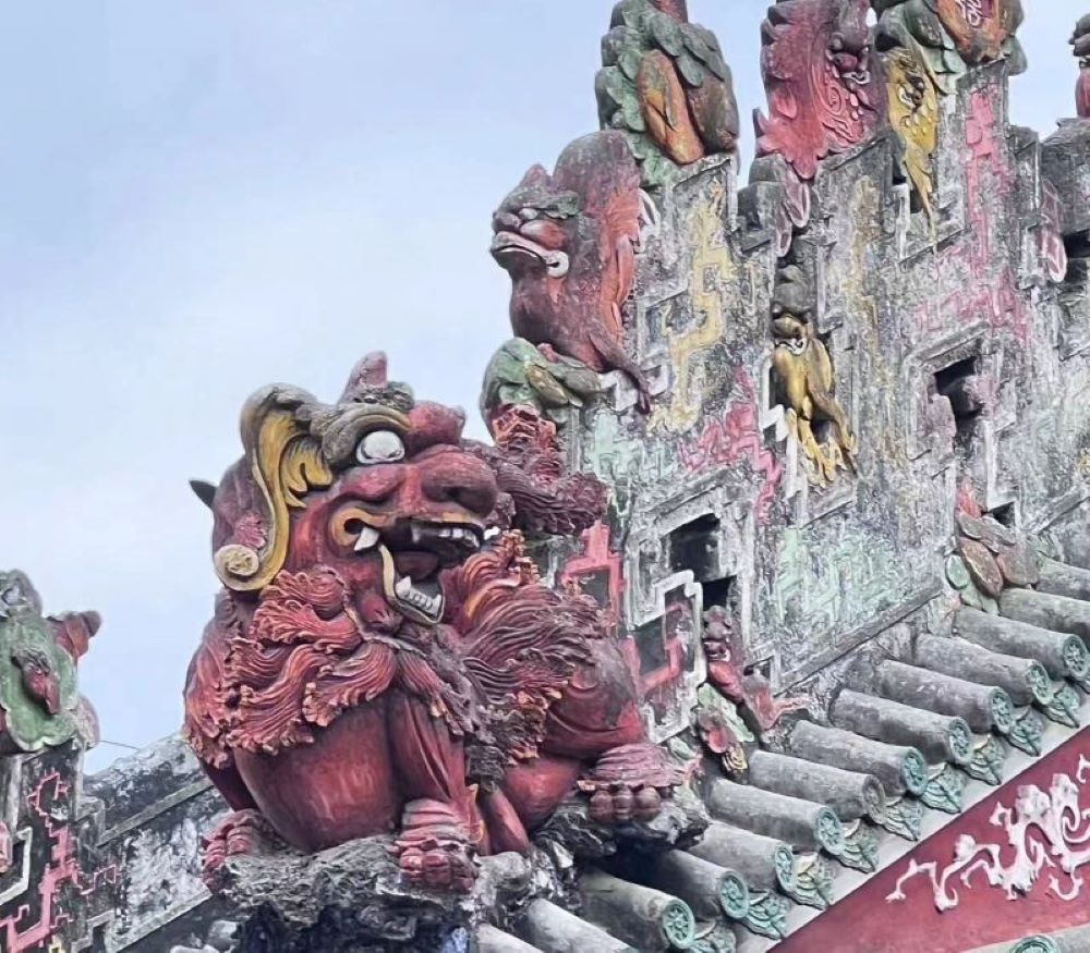 1月11日上午,團隊首先于陳家祠前集合,從遠處可見,集中于屋檐的灰塑,造型奇特,色彩艷麗,別具匠心。走進看,人物、動物形象栩栩如生,炯炯有神,裝飾的幾何紋樣富含中國傳統元素,頗具繁復之美。