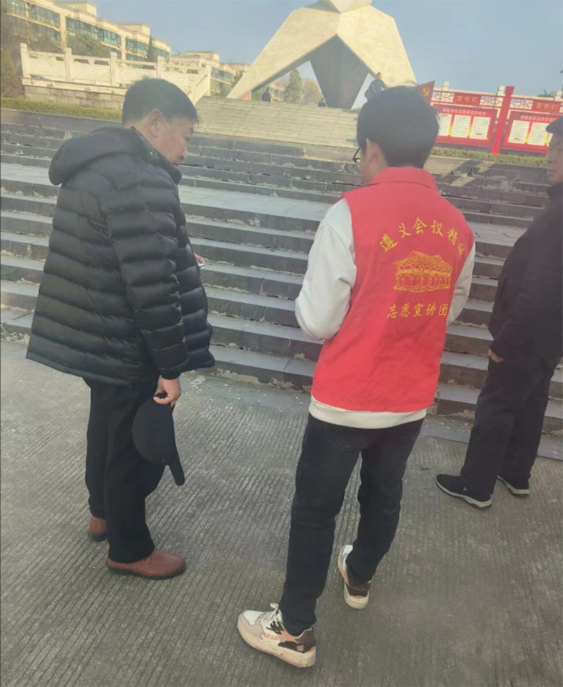 2024年2月12日12:30-13:30,隊員葉澤鷺在福建省南平市邵武市面向小區鄉親們開展了宣講遵義會議精神的活動。在宣講過程中,宣講人引用史料,生動地再現了紅軍長征的過程與遵義會議的歷史,讓鄉親們感受到了遵義會議精神對于新中國的成立與人民的幸福生活具有著舉足輕重的意義,堅定繼承并發揚遵義會議精神的決心。