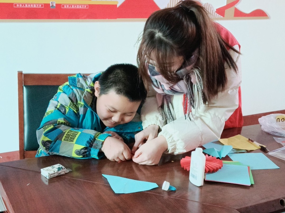 中華民族共同體意識是國家統(tǒng)一之基、民族團(tuán)結(jié)之本、精神力量之魂,民族團(tuán)結(jié)有利于國家保持安全與穩(wěn)定。圖中是志愿者和小朋友一起折紙,通過折紙的方式引導(dǎo)小朋友團(tuán)結(jié)友愛、團(tuán)結(jié)各民族人民共同進(jìn)步。一件件完美的折紙排列在桌子上,民族團(tuán)結(jié)的種子也深深的埋藏在小朋友們的心中。