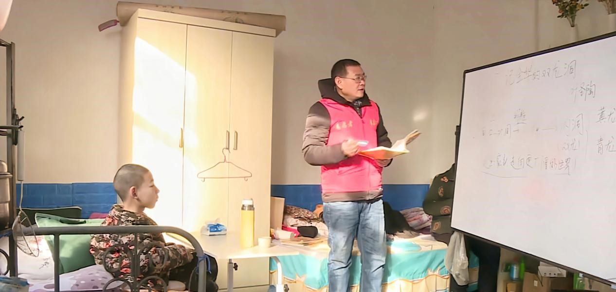 教育在人一生的發(fā)展中起著無可替代的作用,接受教育是每個公民的權(quán)利和義務(wù),然而對部分重度殘疾的兒童來說,身心發(fā)展的缺陷使他們難以走出家門并進入學(xué)校接受教育。為弘揚志愿者精神,對需要幫助的社會弱勢群體給予幫助,傳遞愛的音符,讓他們感受到社會的關(guān)懷,使他們以更健康積極樂觀的心態(tài)去看待社會,勇敢面對人生的挫折,曲阜師范大學(xué)統(tǒng)計與數(shù)據(jù)科學(xué)學(xué)院“星星之火”實踐隊隊員張欣譽于1月28日跟隨泰安市岱岳區(qū)良莊鎮(zhèn)第二中學(xué)志愿服務(wù)隊送教上門,將優(yōu)質(zhì)的教育服務(wù)送到孤困孩子的身邊。