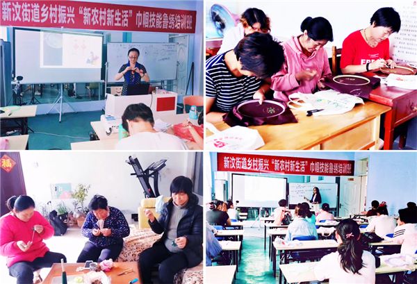 新時代“玉氏鴻葉旗袍”非物質文化遺產傳承和弘揚過程中,當地政府和相關組織也在支持著非遺花餑餑的傳承和保護工作。為了增加農村婦女創業就業機會更好地回報社會,2010年開始,牛玉葉與新汶街道聯合成立了新汶街道服裝加工技術婦女培訓基地、新汶街道精準扶貧救助基地,免費組織現代縫紉新知識、新技術、新品種新技能培訓以及魯繡制作,2016年,她被新泰市婦聯聘為巾幗就業創業導師團導師。十幾年的時間,義務培訓婦女15000余人次,帶動并安置貧困下崗職工、殘疾人就業100余人。”2019年,牛玉葉發起并成立山東省非物質文化遺產魯繡聯盟,致力于推廣傳承發揚魯繡,全力以赴投身于研發魯繡衍生品。短短3個月的時間,研發了隨手禮、小香包、屏風等多個系列;結合新泰風俗文化,又衍生了人物繡、荷包繡和新泰新八景繡以及圍巾、手包等40多個花色品種。2020年疫情期間,通過直播帶貨方式,出口新加坡荷包繡品3000多個,單品185元,銷售收入60多萬元。