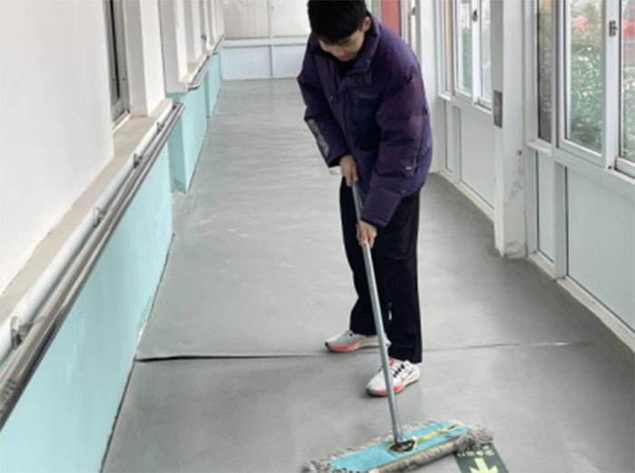 實踐團成員拖地打掃衛(wèi)生