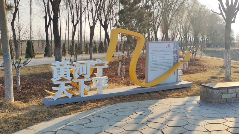 通過岸邊的宣傳語,我們團隊了解了黃河治理的歷史以及當今黃河風貌帶生態修復項目的相關介紹。此外,黃河邊還修建了黃河宿集、觀瀾臺、黃河生態保護主題公園等設施,讓人們更加了解、更加親近黃河。