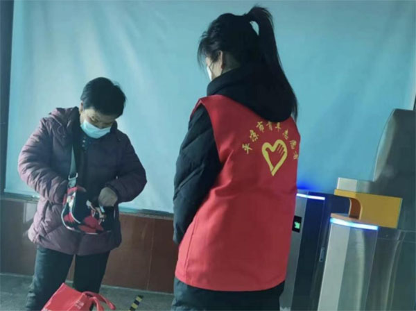 圖為志愿者幫助乘客檢票。陳蕊蕊 提供