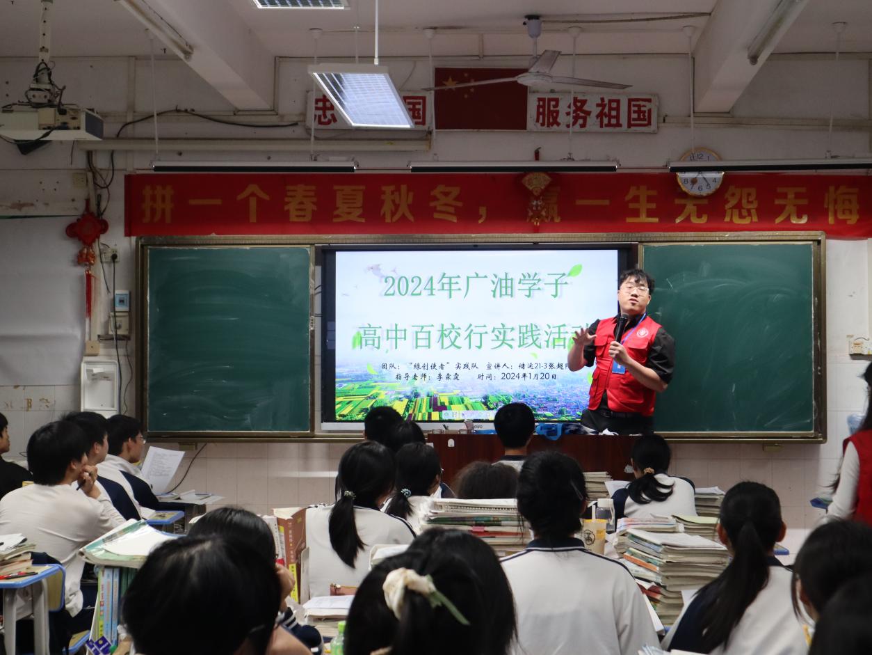 “綠創使者”實踐隊積極響應學校的號召,于2024年1月22日如期回到廉江市第一中學開展廣油學子高中百校行活動。