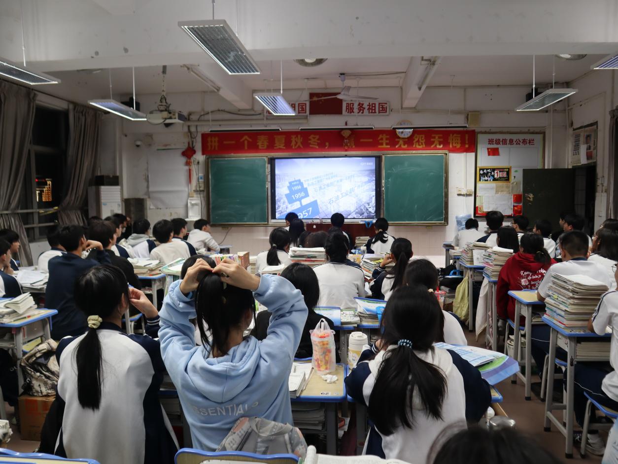 圖為實踐隊成員帶領同學們一起大聲朗讀高考助威詞的場景