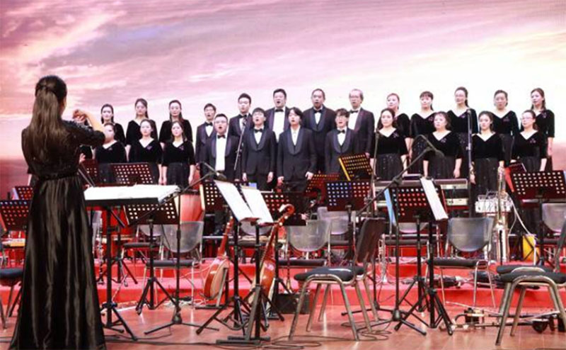 器樂合奏《紅樓夢》《冷月》《金蛇狂舞》旋律或悠揚婉轉,或激昂熱烈,讓大家共同沉醉于優美的旋律中,展現了音樂所蘊含的無盡魅力。滇劇唱段《荷花配》以傳統地方戲劇劇種為主,傳承了云南民族民間音樂的特點。演出在合唱《燈火里的中國》中落下帷幕,唱出了燈火里的美好生活,展現了人們對祖國的美好祝福以及對未來的欣然向往。