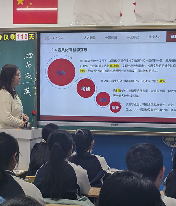 為幫助吉林省四平市第一高級(jí)中學(xué)應(yīng)屆高考生提前了解大學(xué)生活以及報(bào)考山東大學(xué)(威海),珈傳吉音團(tuán)隊(duì)于2月18日在四平市第一高級(jí)中學(xué)高三班級(jí)召開(kāi)線下寒假暖冬宣講。團(tuán)隊(duì)分別從高校簡(jiǎn)介、校園生活、專業(yè)介紹以及招生概況全面的展示了四平一中應(yīng)屆畢業(yè)生展現(xiàn)山東大學(xué)(威海)良好風(fēng)貌以及極高的宣傳水準(zhǔn)。