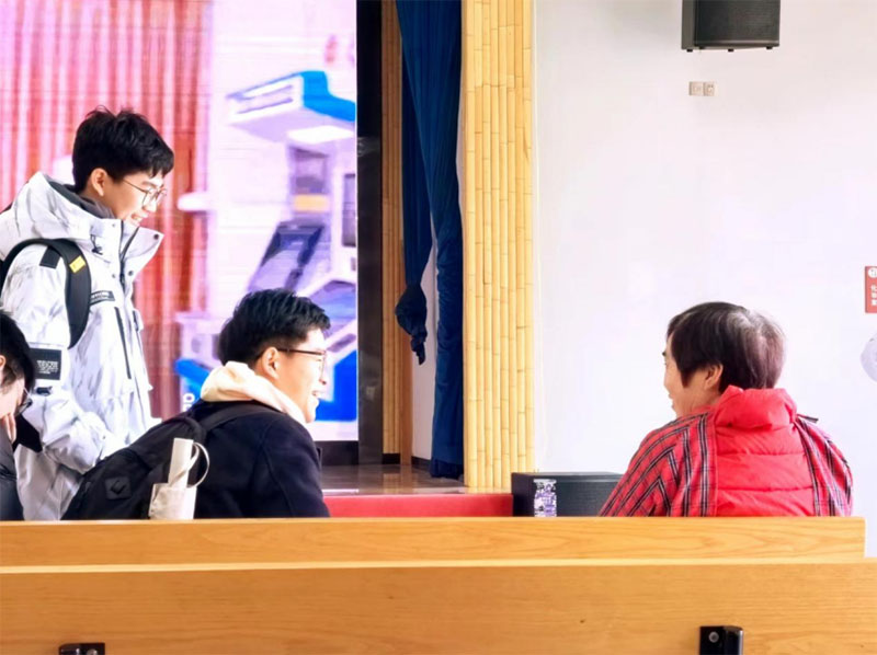 2月1日,實踐隊隊員在蓮花落傳承人倪齊全老師家中采訪倪老師。李軼宸 攝