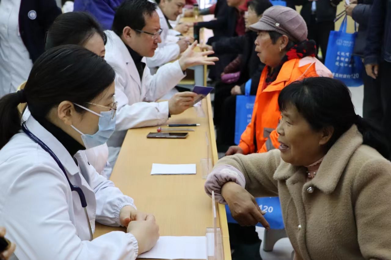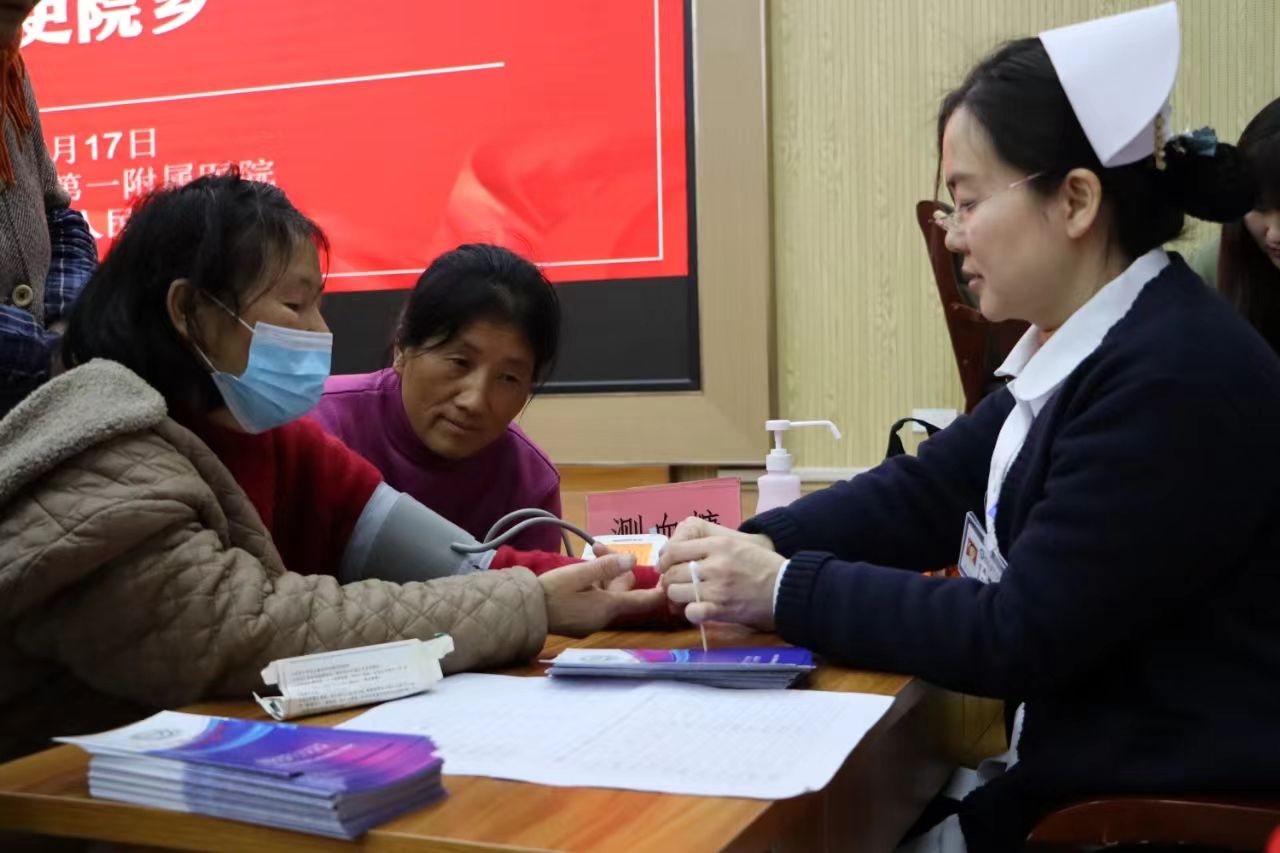 醫護人員為老年人測量血壓和血糖 愛心相伴,卒中不再獨行