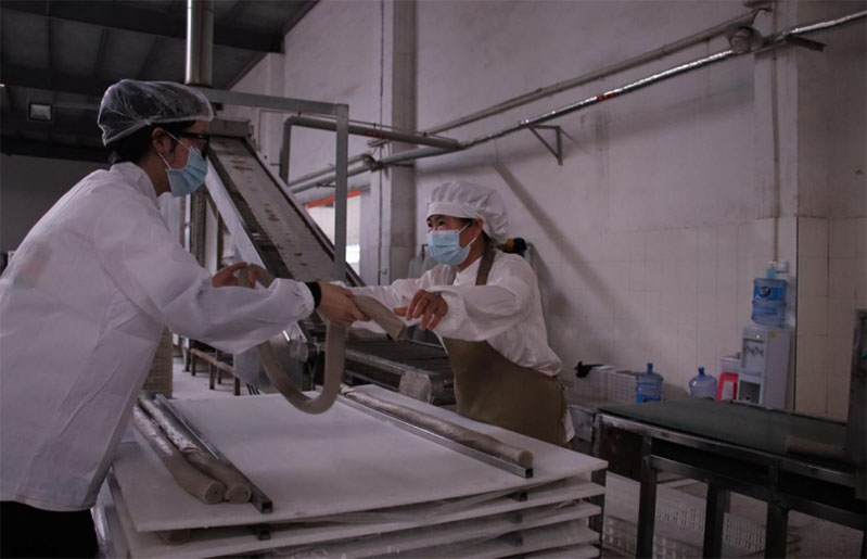 為讓消費者下單更放心,實踐團隊改變營銷思路,把直播場景搬到魚絲生產車間、魚絲晾曬區域以及農產品直播室,對魚絲生產流程進行全程直播,讓網友放心購買魚絲。團隊成員們在生產車間內用鏡頭向觀眾展示興國魚絲從原材料選取到精細加工的全過程,從新鮮魚肉的選取、攪拌成漿,再到卷皮定型,每一個環節都凝聚著工人師傅的匠心與智慧,向直播間的觀眾們傳遞出魚絲制作工藝的復雜及精湛。
