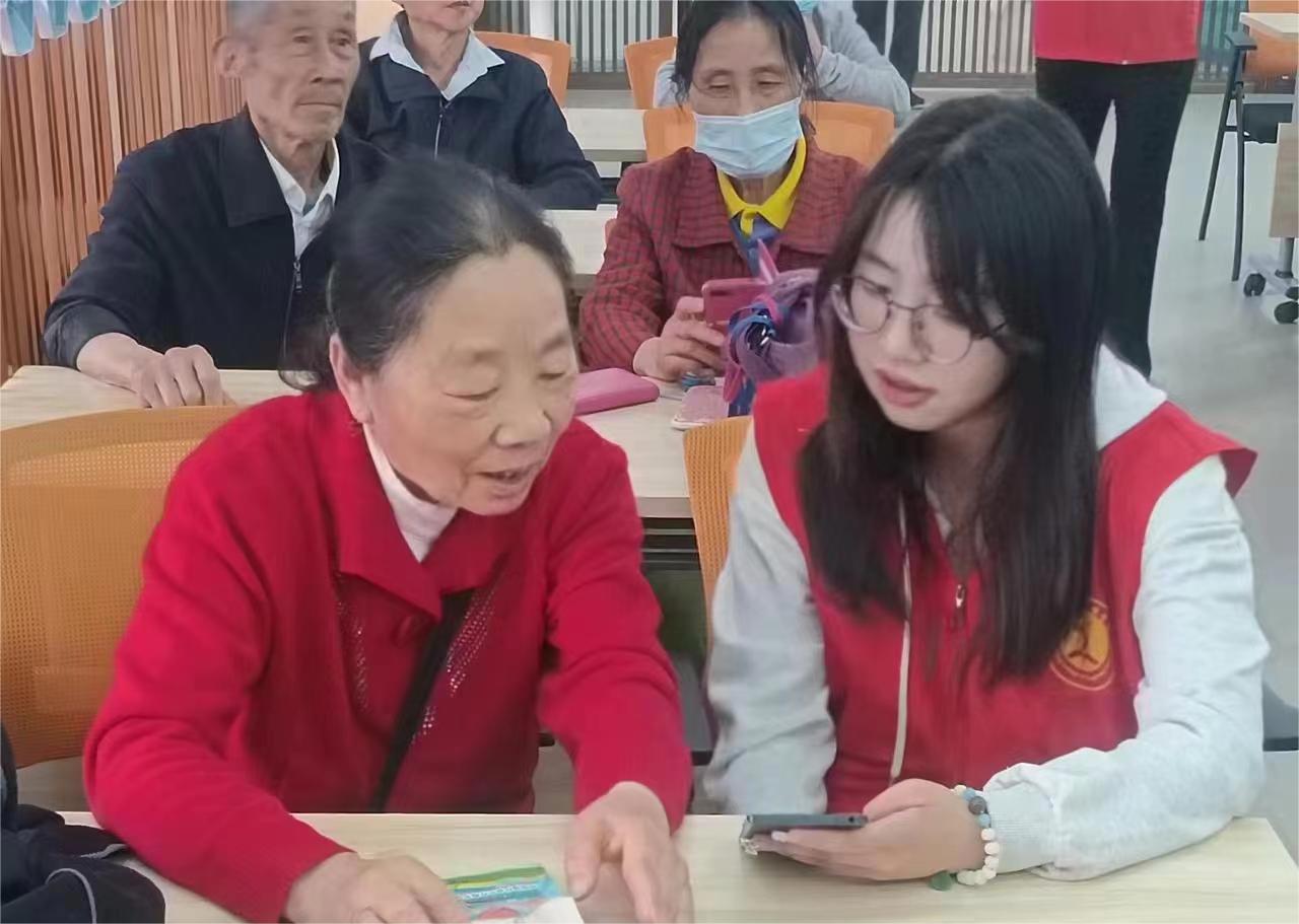 圖為實(shí)踐團(tuán)隊(duì)志愿者周家欣為老年人講解。 周家欣 供圖