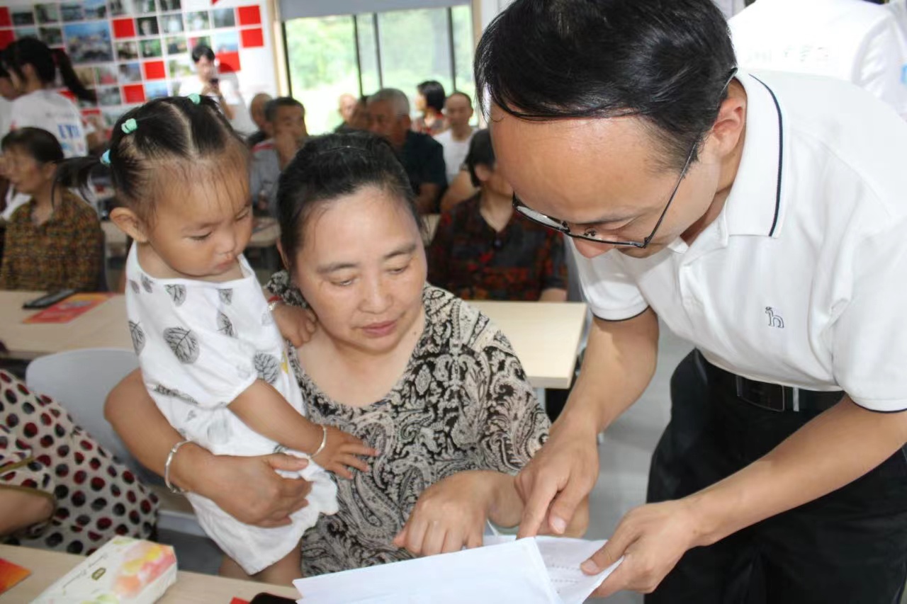 宣講活動結束后,韓老師和婁老師帶領成員們向每位參與的老年學員分發了宣傳冊和紀念品,這些資料包含了宣講的要點,以供老人們回家后參考。