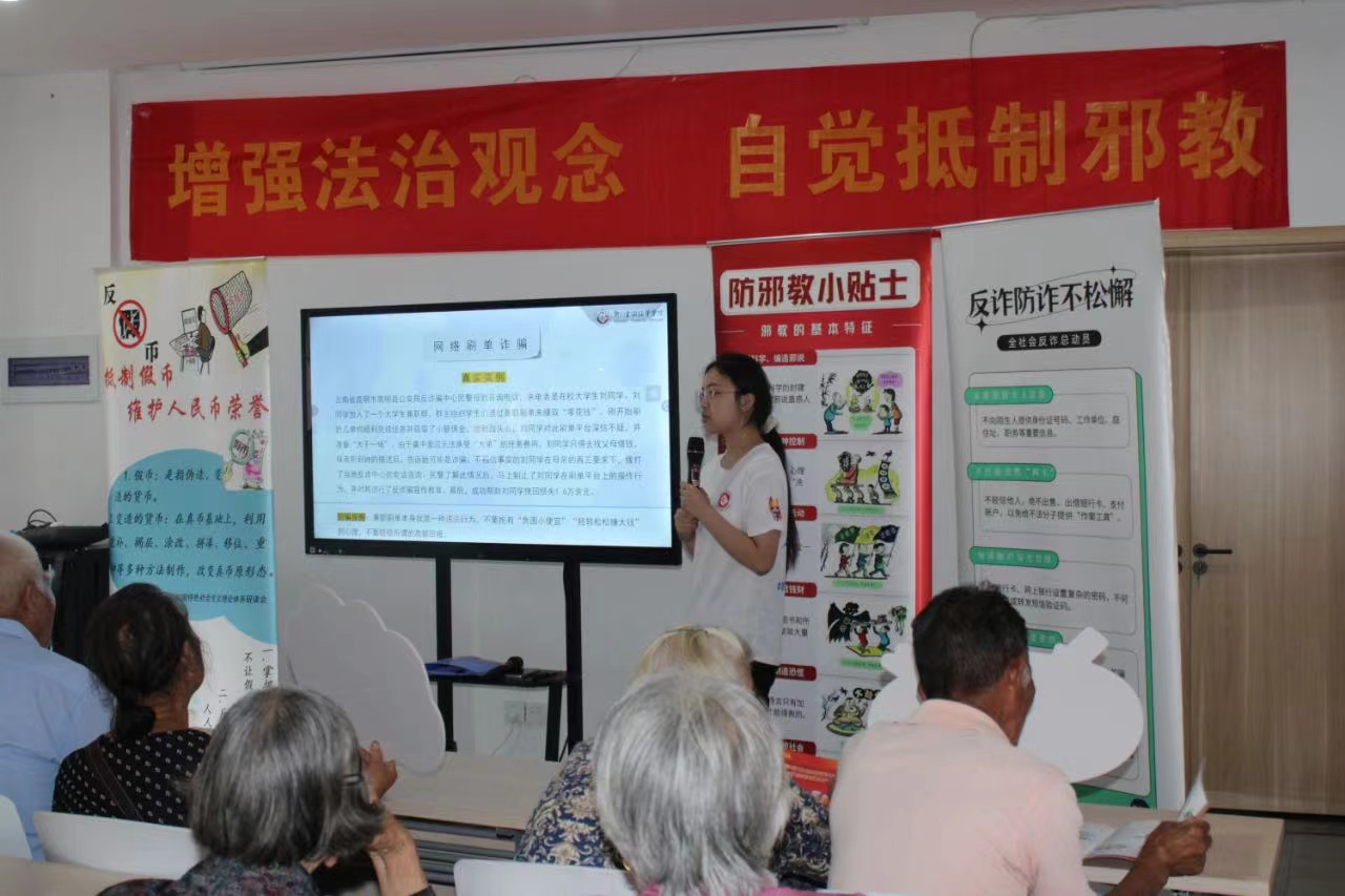 其次是二“反”二演,王思琦同學進行了“抵制詐騙”的宣講,她結合真實案例,詳細解析詐騙手段,提供實用的防范方法。接著,諸夢盈、李曉璐等四位成員以情景劇的形式模擬詐騙場景,使老年學員在輕松愉快的氛圍中掌握了防騙技巧。