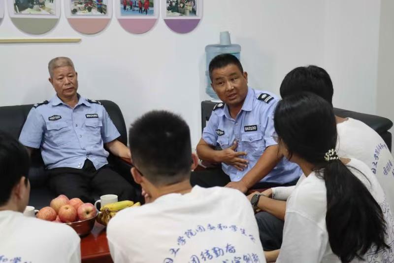 隨后,實踐服務團一行人回到長征社區同老黨員、退伍老兵一起聊天,深入學習先輩的故事。在他們的講述中,一頁頁塵封的歷史畫卷在我們眼前展開。幾番砥礪奮斗,夢回吹角連營,鐘老向實踐隊員們介紹,自他開始家里已三代從戎,現兩個兒子也在部隊衛國戍邊。 “今天的中國紅是烈士的鮮血染紅的,來了就多去革命景區看看……”一句句殷殷教誨在耳畔不斷響徹,給予青年最深刻的一堂人生課。歷史川流不息,精神代代相傳,實踐隊員曾禮悅表示:“我們要堅持發揚紅色精神,將其內化于心,外化于行。”