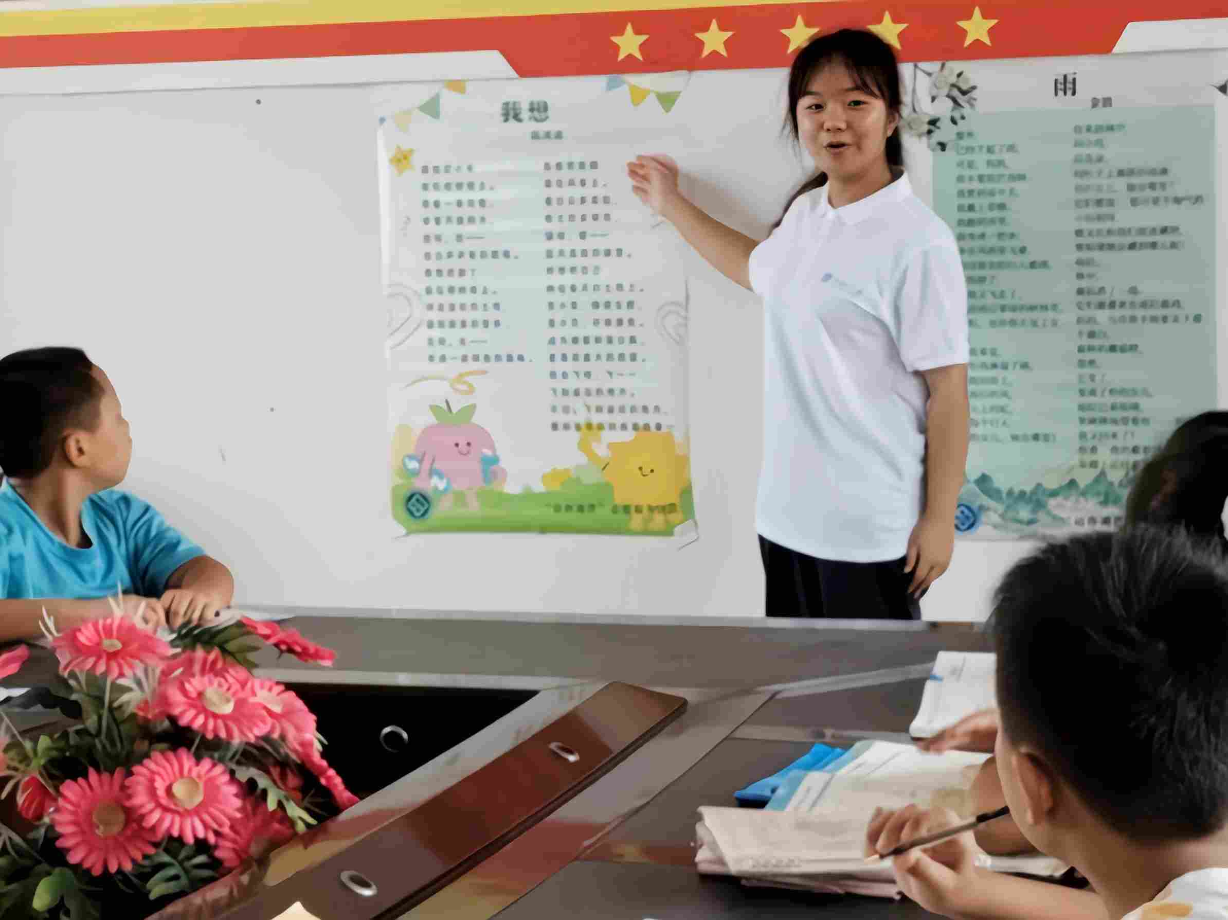 團隊成員羅惟設計開展了“共讀一首詩”暖場環節。齊誦童趣盎然的詩歌,不僅迅速拉近了團隊成員和同學們之間的距離,還巧妙地在互動中初步評估了同學們的普通話水平。