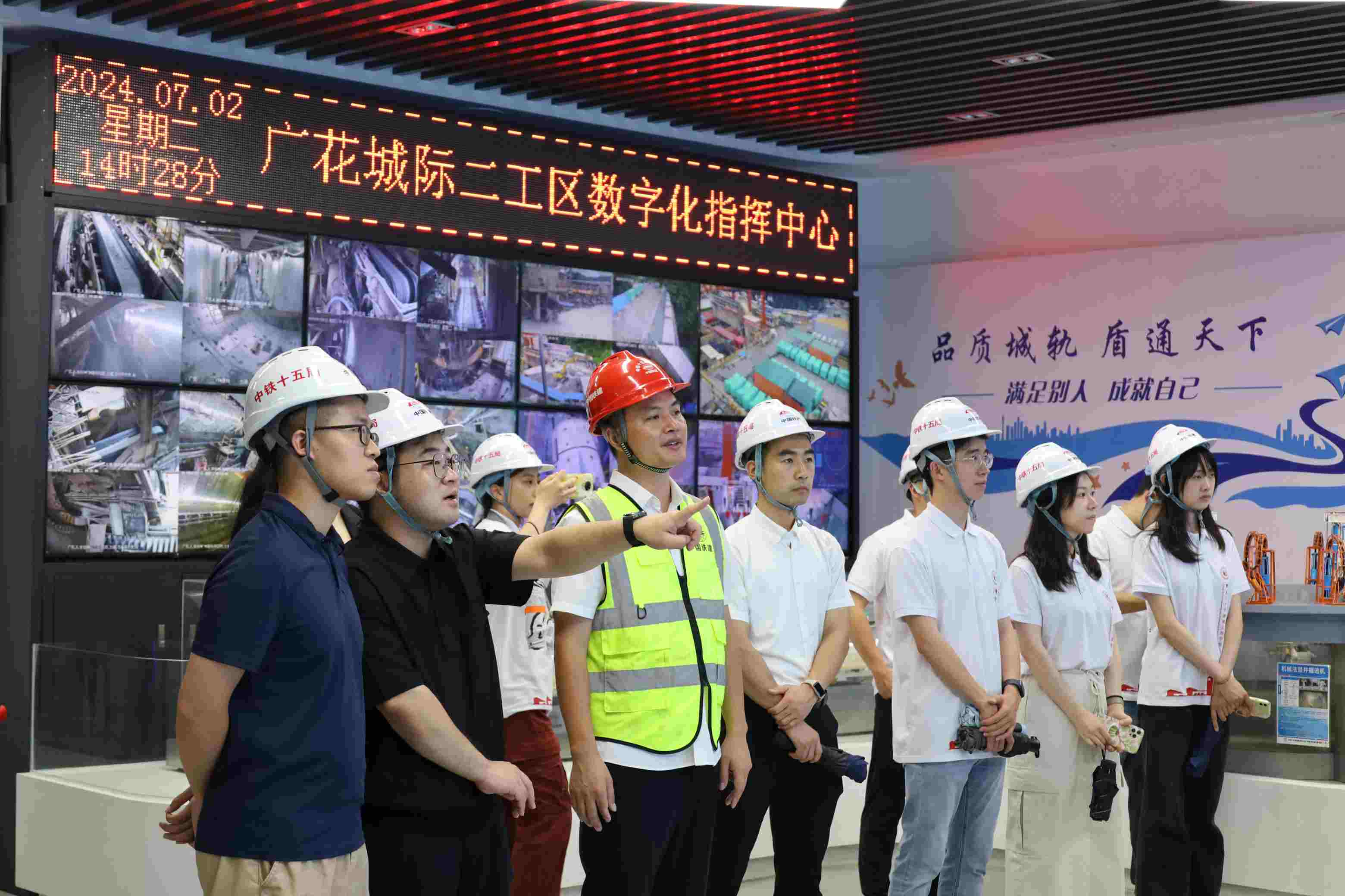 實踐團前往由中鐵十二局承建的廣花城際項目三工區,了解暗挖技術的實施過程及過程管控。區段內的白云東平站為明暗挖施工相結合的地下三層島式車站,是全線唯一的車站暗挖段落。為最大限度減少地下施工對地面建筑和交通影響,項目團隊通過“小切口大手術”的形式,打設超深盾構井,構建“微型”工地,探索城市地鐵城軌精細化管理新模式,推動資源要素在有限空間的高度集約化管理。