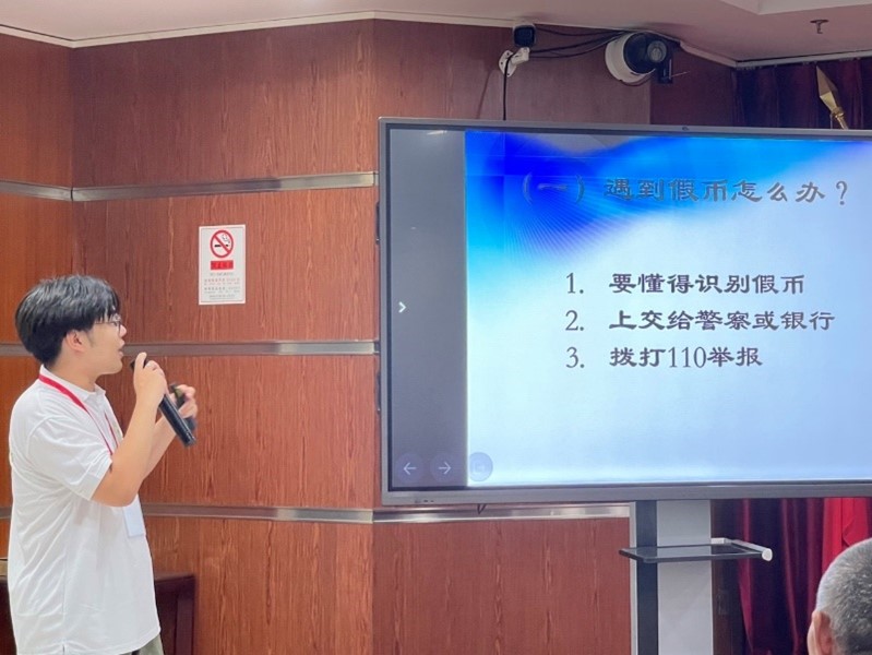 2024年7月4日,在炎炎夏日中,來自浙江金融職業(yè)學(xué)院銀領(lǐng)學(xué)院暑期社會實踐團隊帶著滿滿的熱情與責(zé)任感,走進了閘北村社區(qū),為社區(qū)的爺爺奶奶們帶來了一場別開生面的宣講活動。本次活動的主題是“反假幣”與“推普云霄,助力振興”,旨在提高社區(qū)居民對假幣的辨識能力,同時推廣普通話。