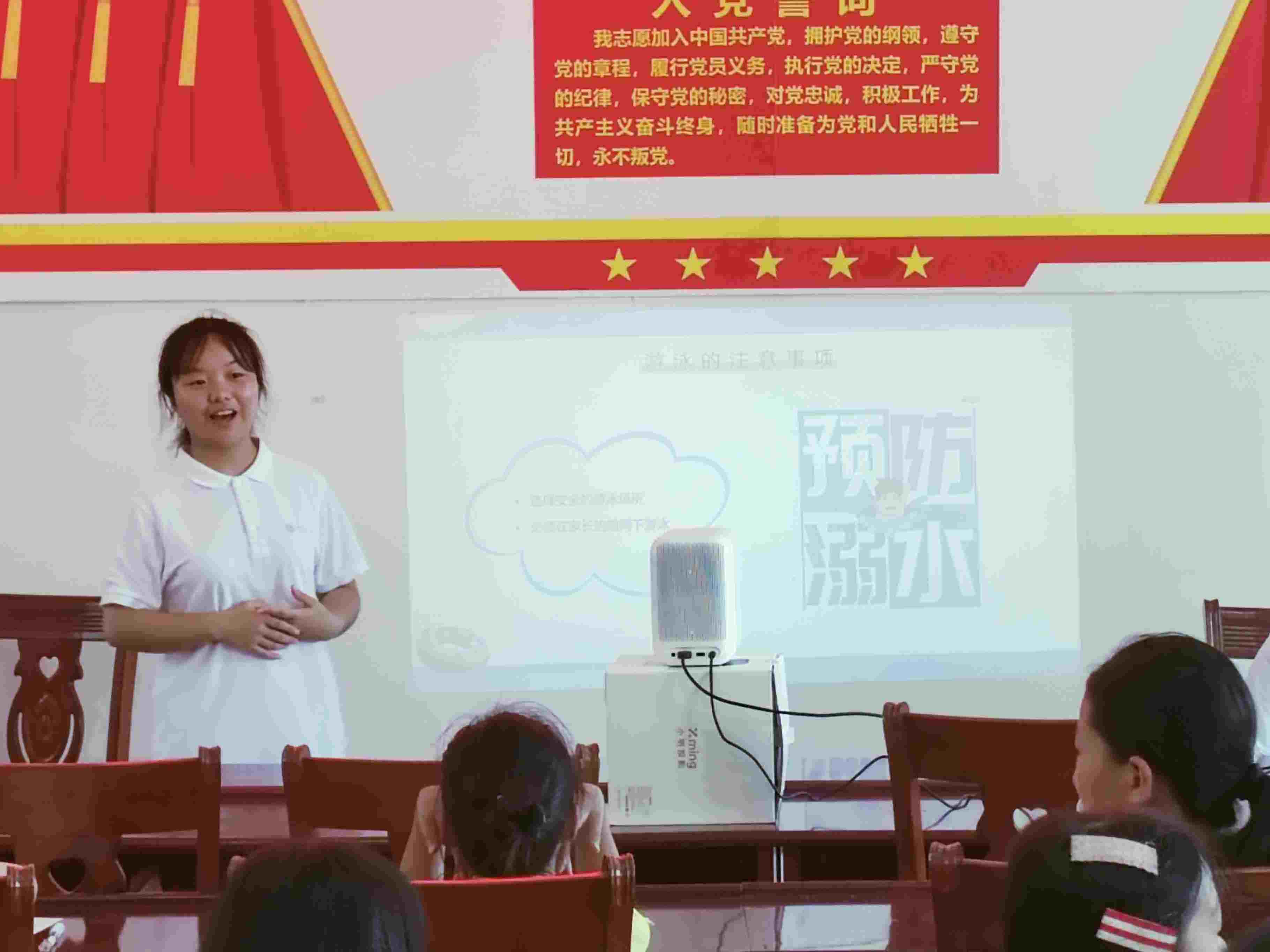 為將推廣普通話與安全教育巧妙融合,團隊設計并開展了以“珍愛生命,嚴防溺水”為主題的安全教育活動。團隊成員羅惟結合當地實際情況,從如何施救與自救兩個方面,為大家講解游泳的種種注意事項。在活動的最后,小朋友們齊聲用普通話朗讀了防溺水“六不準”,并歌唱防溺水安全歌謠,提升小朋友們的安全意識與應對能力,為孩子們的安全意識與語言能力雙提升開辟了新路徑。