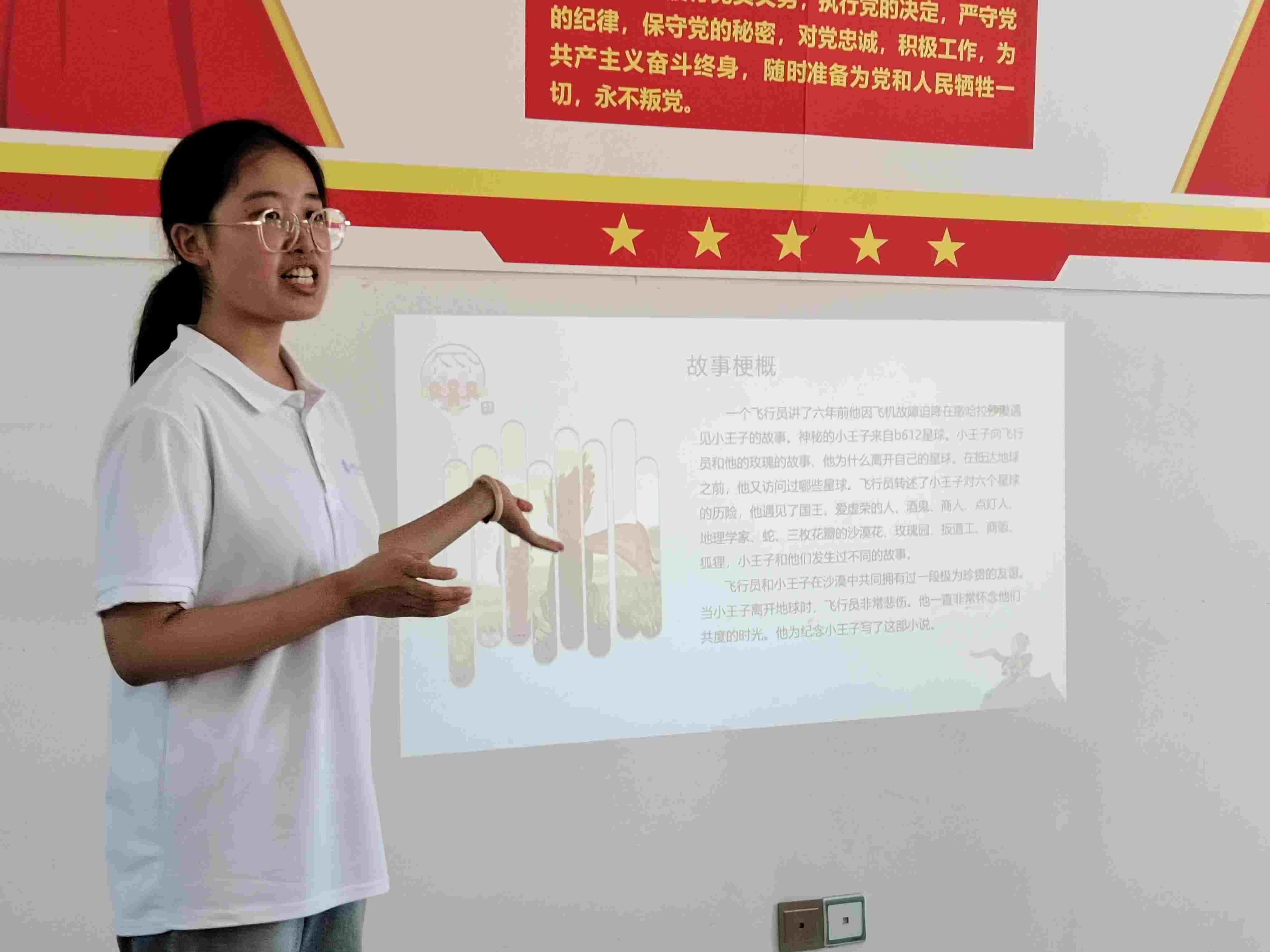 團隊設計了形式豐富、特色鮮明的活動。在“品閱天下,點亮人生”閱讀經典書籍活動中,團隊成員牛圣然為當地小朋友講解了世界經典名著《小王子》的故事情節,小朋友們都認真傾聽。在互動環節中,小朋友們積極使用普通話參與故事情景演繹,在交流中體驗經典故事情節,沉浸式體悟《小王子》的魅力。
