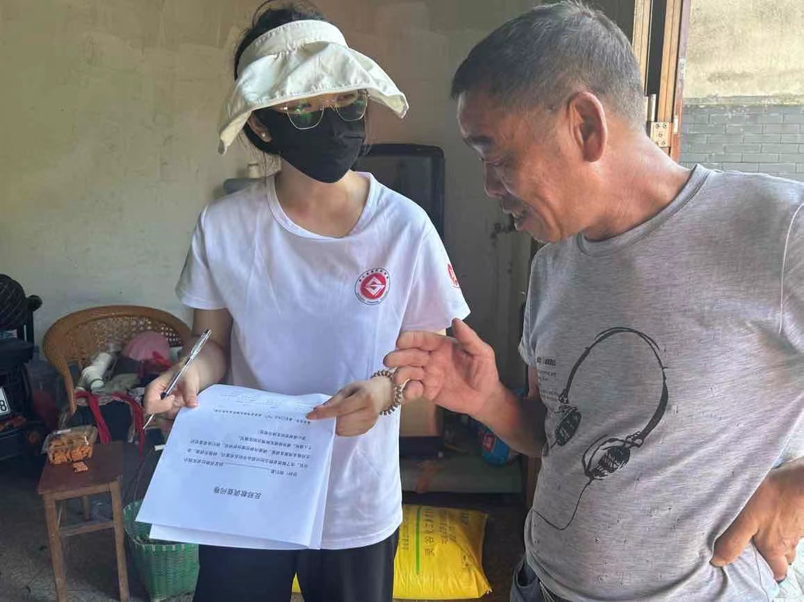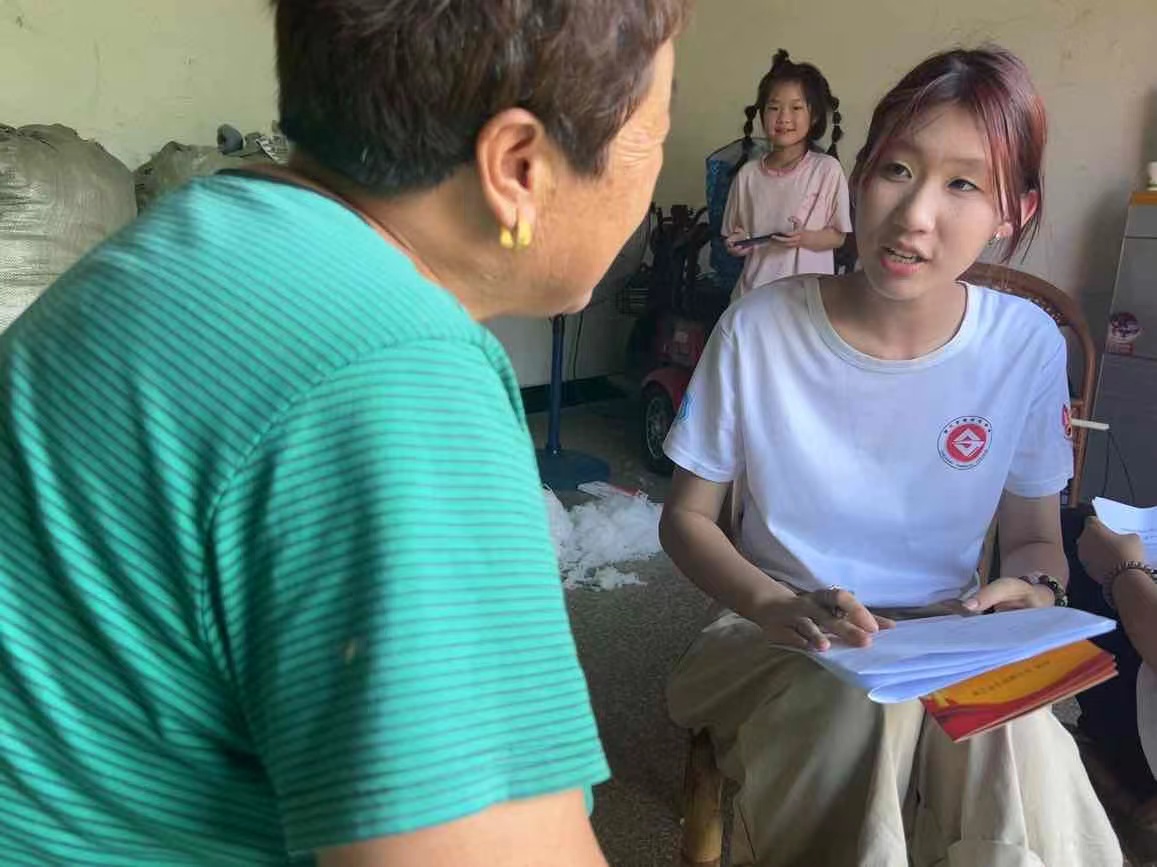 在調(diào)研環(huán)節(jié),韓建華和婁瑩瑩老師帶領(lǐng)宣講團(tuán)的成員們開展問卷調(diào)查,與村民們親切交談,傾聽他們的心聲與需求,他們用自己的行動讓村民們感受到了來自新鮮血脈的溫暖與關(guān)懷。
