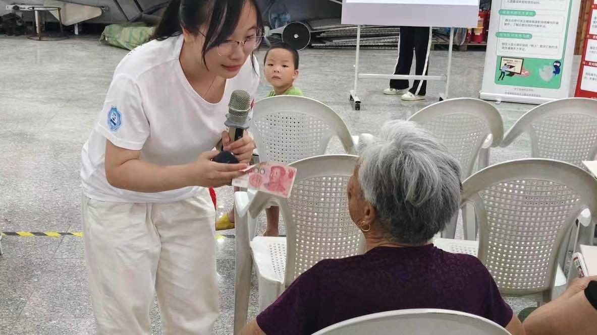 接著是王思琦的反詐宣講,同樣引人入勝。她通過一系列生動有趣的互動問答,讓村民們在輕松愉快的氛圍中掌握了防騙技巧;而諸夢盈、沈婷婷等4人精心編排的反詐情景劇,更是將復(fù)雜的防騙知識融入到日常生活中,讓村民們受益匪淺。