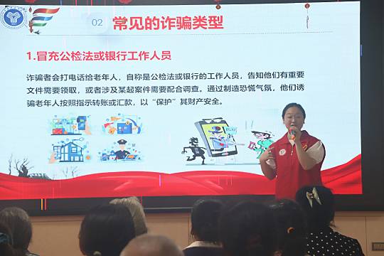 凝聚慧眼 守護安全 隨著詐騙手段的多樣化,對于詐騙手段的識別能力也需要進一步地加強。為此,實踐團針對發生在老年群體中的典型詐騙案例進行了相關講解,以詐騙分子冒充公檢法或銀行工作人員、“神醫”或特效藥騙局、贈送物品、親情缺失型詐騙等六種詐騙類型進行科普,加強了老年群體對這類詐騙類型的初步的了解和防范,同時通過宣傳的方式,讓公眾更加熟知了各種詐騙手段的特點、套路和常見話術,從而增強老年人對詐騙案件的識別能力。