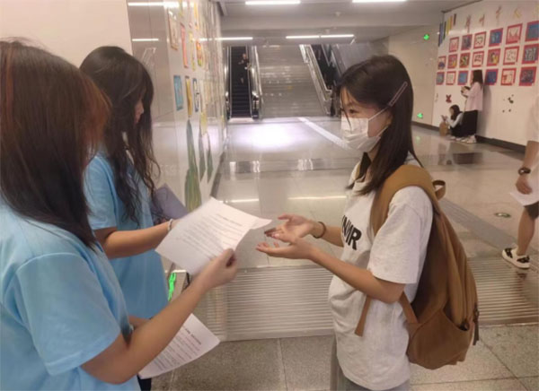 6月30日上午,實踐團隊首先來到鄭州市地鐵站進行為期兩天的口腔健康宣講。本次宣講主要針對中青年人。在地鐵里,年輕的“老師們”通過口腔模型、牙刷教具、虛擬仿真視頻等,用通俗易懂的語言,耐心地為過往的人群講解如何正確刷牙、使用牙線,以及口腔疾病的早期癥狀和預防措施,許多咨詢的乘客參與了互動。對咨詢的人群提出的各種口腔健康問題,都給與了解答,并給出專業的建議。