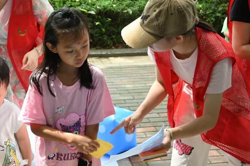 圖為志愿者對(duì)小朋友提問。只此青綠志愿服務(wù)隊(duì) 李林炎 供圖