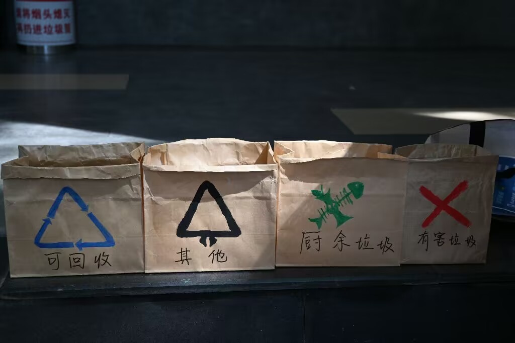 圖為垃圾分類紙袋供活動(dòng)現(xiàn)場(chǎng)使用。只此青綠志愿服務(wù)隊(duì) 李林炎 供圖