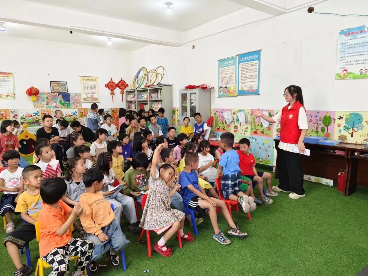 活動開展前,“童心港灣”負責人王慧老師介紹到:“達板鎮“童心港灣”是共青團組織在村級層面常態化開展的關愛留守兒童項目,通過整合基層各類陣地、資源,選配“童伴媽媽”來組織家訪校訪、日常陪護、志愿服務等活動,這里的孩子們大部分為農村留守兒童,他們對實踐隊成員們的到來充滿了歡迎和熱情。”