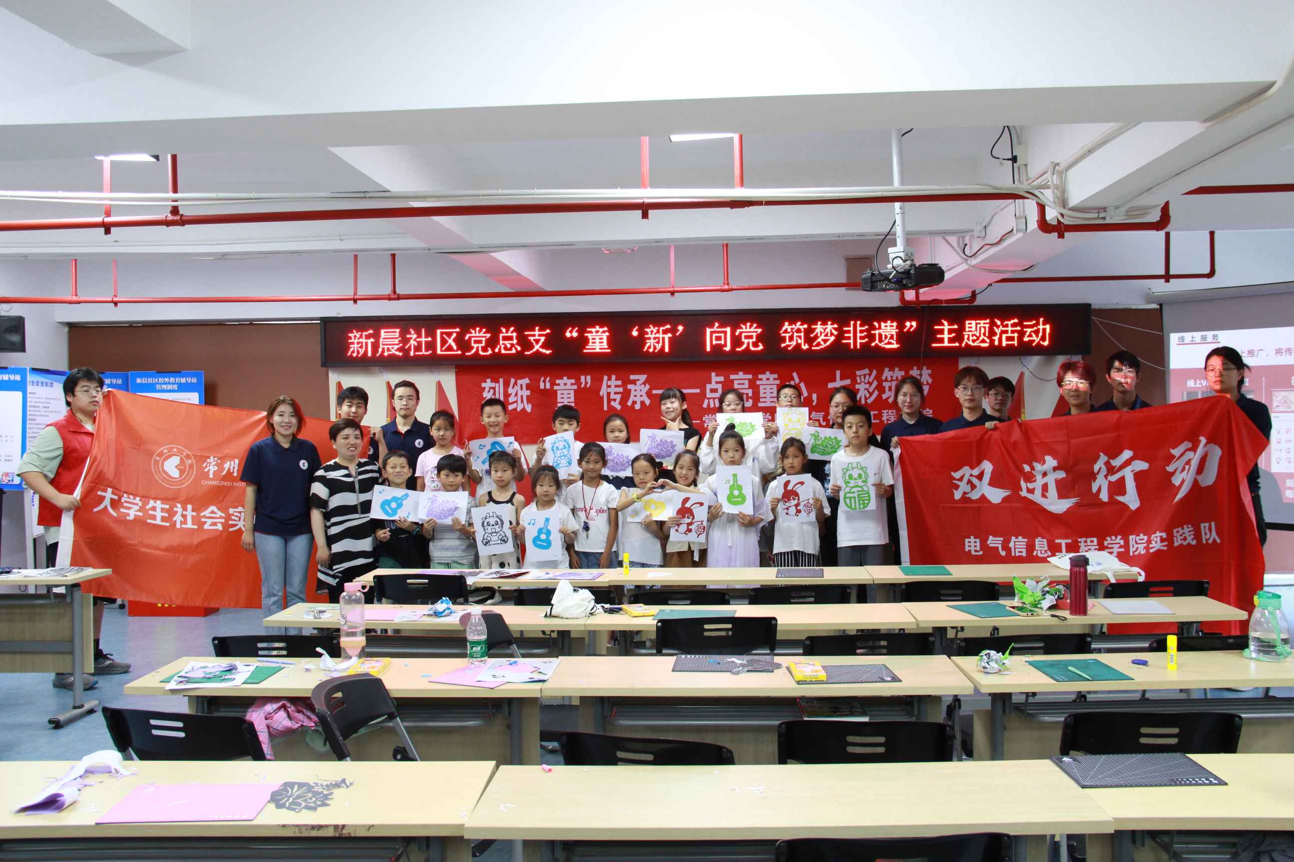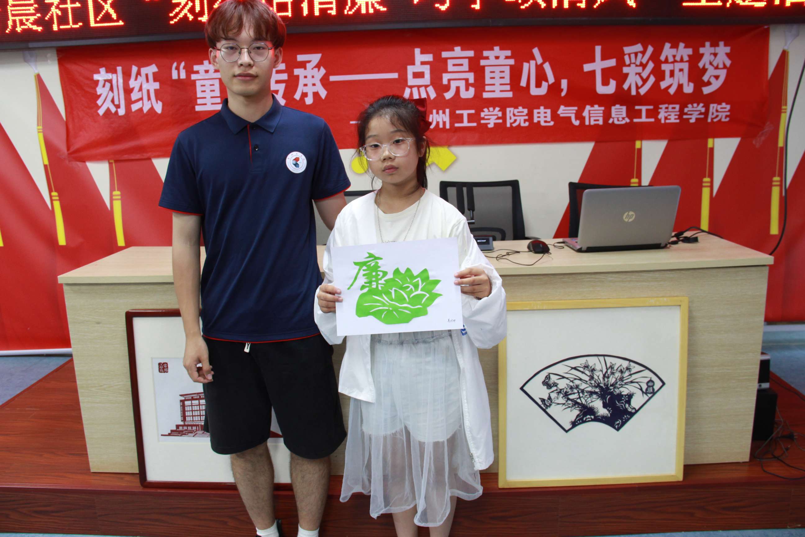 圖為新晨社區(qū)活動(dòng),團(tuán)隊(duì)成員與完成刻紙的小朋友合影。多彩大學(xué)生網(wǎng)通訊員 王宇杰 攝